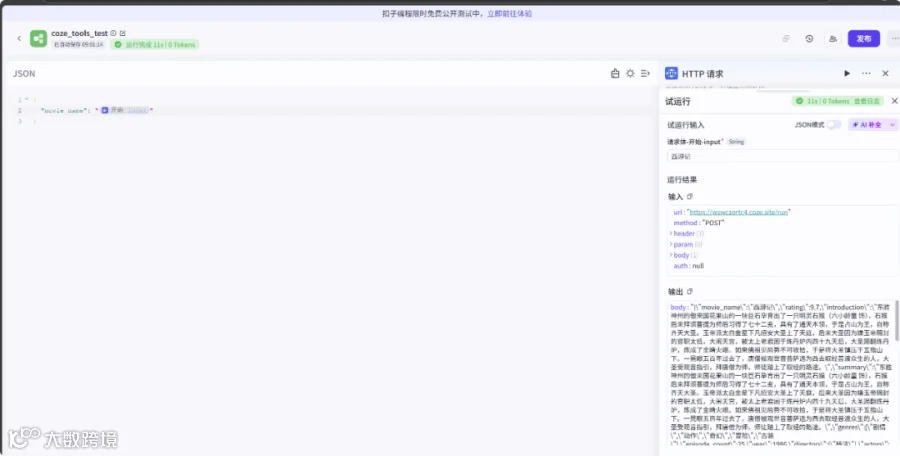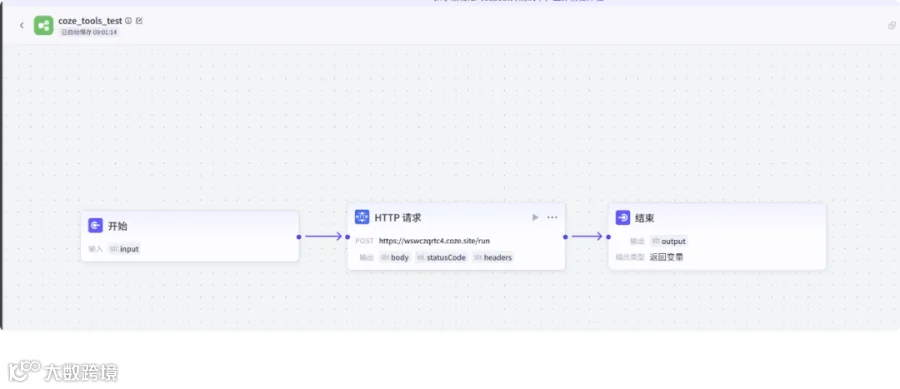 先搭建一个简单coze工作流,通过HTTP请求节点测试API