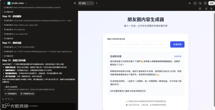 输入:"生成一个根据一句话,可以生成朋友圈内容的网页应用"