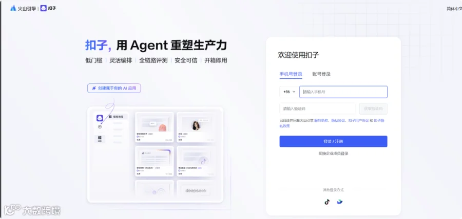 一句话 → 生成智能体 / 工作流 / 网页 →