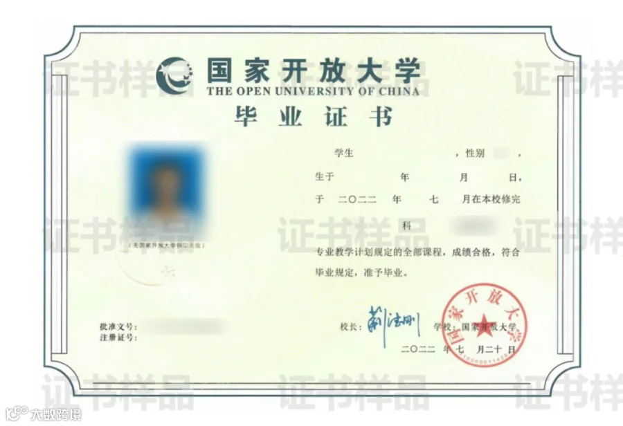 国家开放大学毕业证书样本