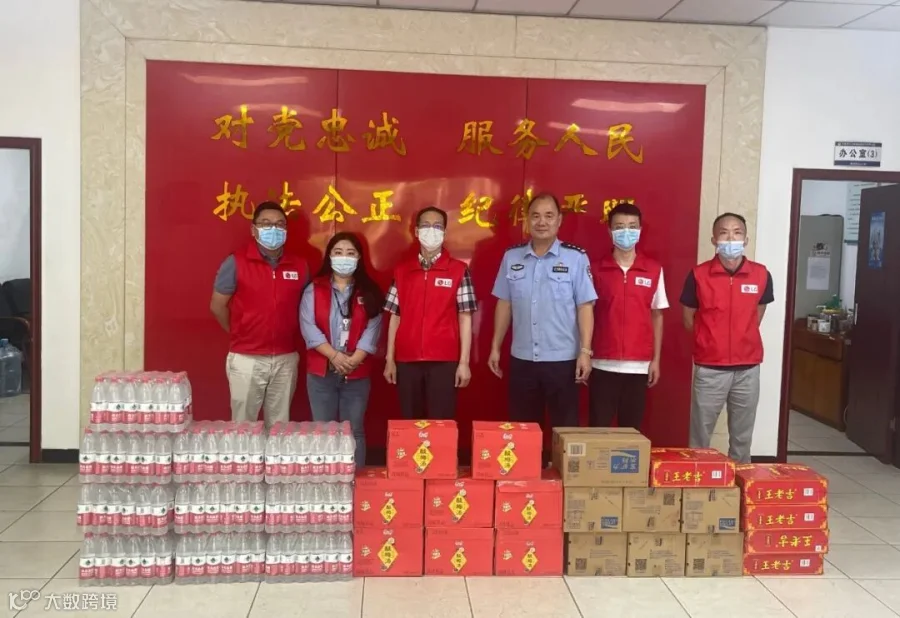 ,代表公司向坚守一线的工作者们表达敬意,并为他们送去了宝矿力水特、王老吉、酸梅汤等清凉解暑饮品。