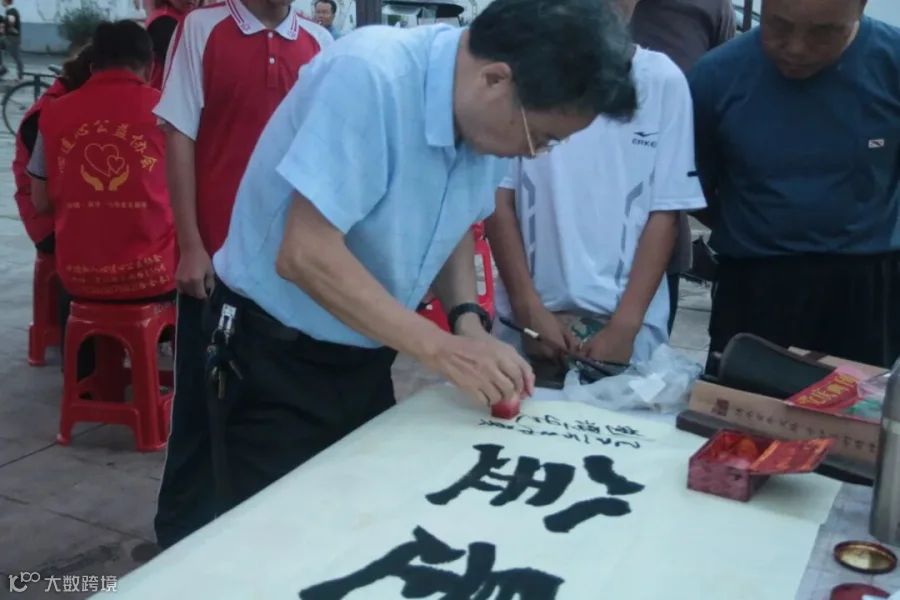 更令人惊喜的是,中国硬笔书法协会会员,韶关市文艺评论家协会会员刘跃先老师来到现场,铺纸研墨,一幅幅承载着祝福与吉祥的书法作品诞生,文化气息格外浓郁。