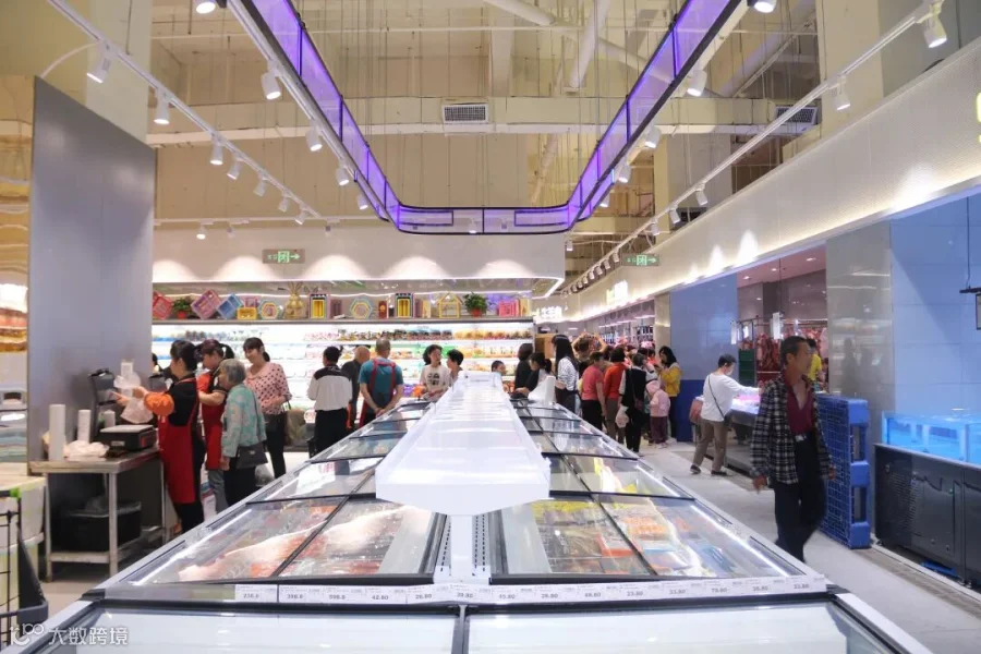 简洁的货架陈列与醒目的低价价签形成鲜明对比,烘焙区的现烤面包香气四溢,生鲜区的海鲜生猛,引得顾客们频频驻足。