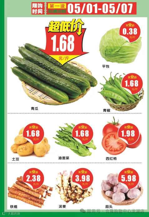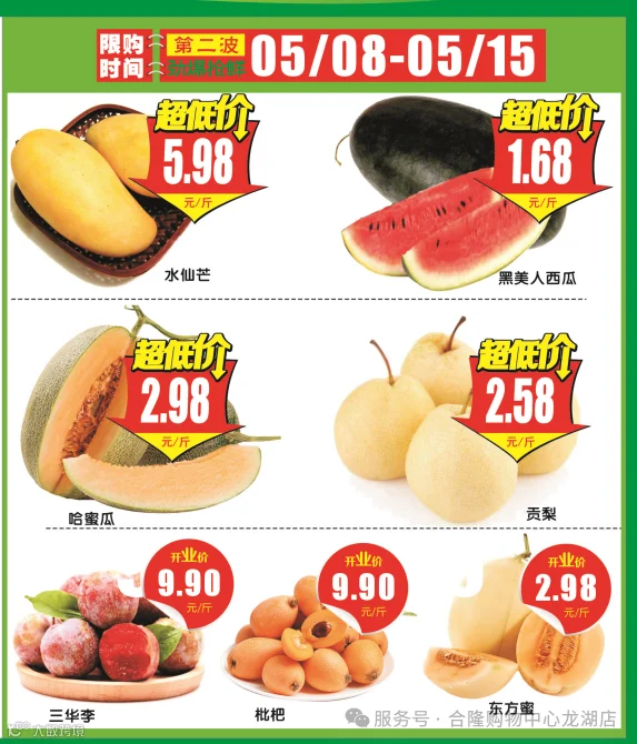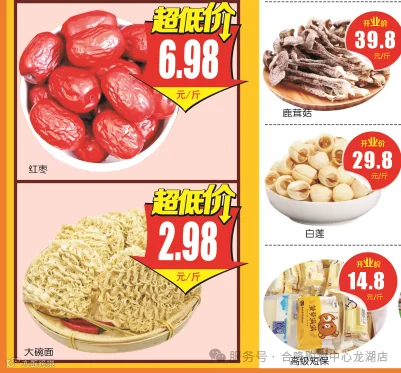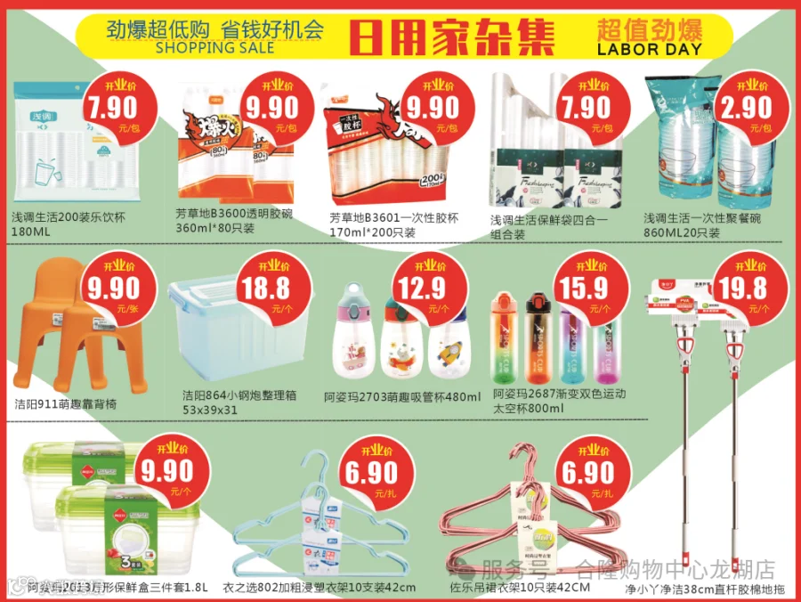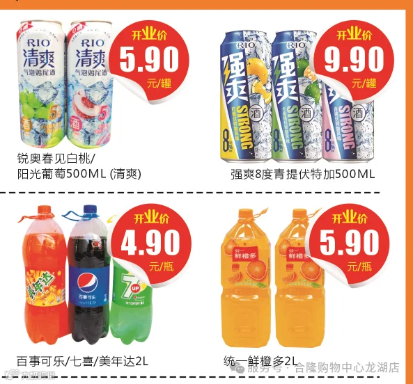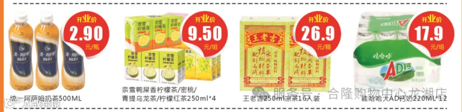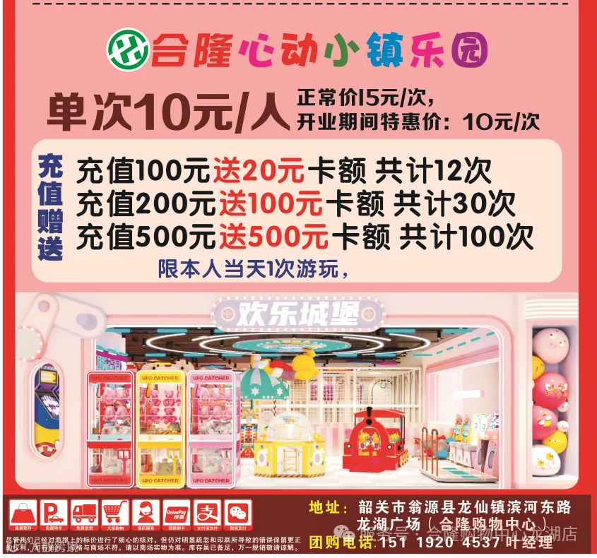即时起至开业活动期间,到合隆购物中心翁源龙湖店超市入口处自拍打卡分享到朋友圈集赞或转发合隆购物中心翁源龙湖店开业海报至朋友圈或抖音,集赞满38个送2L百事可乐一瓶。