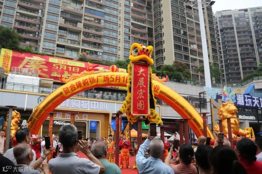 开业仪式在激昂的鼓点中拉开帷幕——舞动的雄狮凌空跃起,采青纳福,寓意合隆购物中心“财源广进、生意兴隆”!