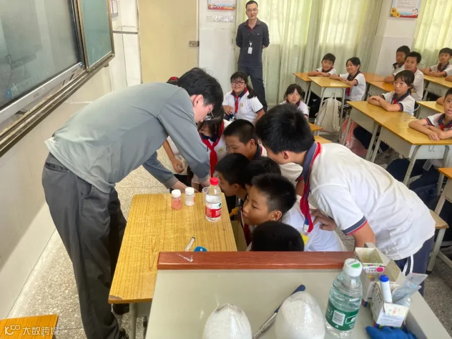 公司技术Team张耿嘉和梁仁倍工程师,以通俗易懂的语言,介绍了公司的概况、产品生产过程及日常应用,使学生们逐步认识到ABS产品对于社会和生活的重要性。随后为学生们科普了生活中的化学知识,现场展示了“火山喷发”、“碘伏变色”及“紫甘蓝水变色”实验,带领学生们走进化学的奇幻世界,多次见证奇迹的发生,学生们沉浸在化学的无穷魅力中。“咱们家里哪些电器、生活用品是用ABS制作的”、“咱们生活中都有哪些神奇的化学现象呢”,伴随着工程师的提问,小朋友们热情地举手回答,整个课堂氛围轻松有趣。