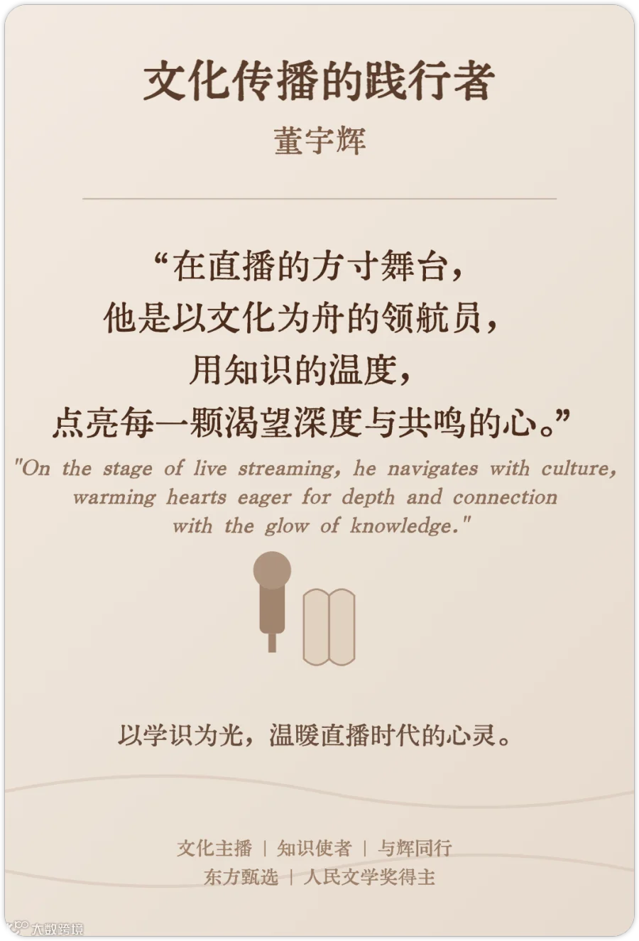 甲木点评:“文化为舟的领航员”、“知识的温度”、“渴望深度与共鸣的心”,这些词精准地抓住了董老师与其他主播的差异化价值,既有文化底蕴,又有人文关怀。听着就很有画面感和认同感,对不对?