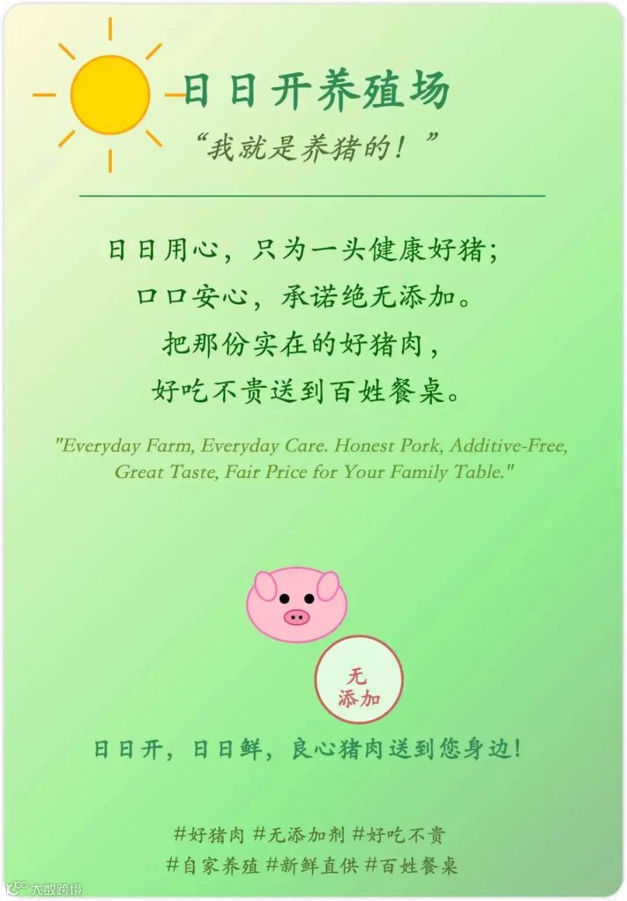 甲木点评:这个太实在了!“我就是养猪的!”直接拉近距离。“日日用心”、“口口安心”、“绝无添加”、“好吃不贵”,每一个词都打在了老百姓的心坎上。这种朴素的真诚,本身就是最强的信任背书。