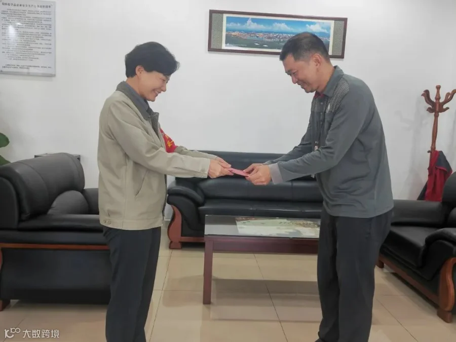 7月5日,公司总经理周垠廷、工务总监朴亨洙向徐建艺表示热烈祝贺!周垠廷总经理向徐建艺颁奖,并希望他再接再厉,积极革新,成为保护安全生产的Superman。