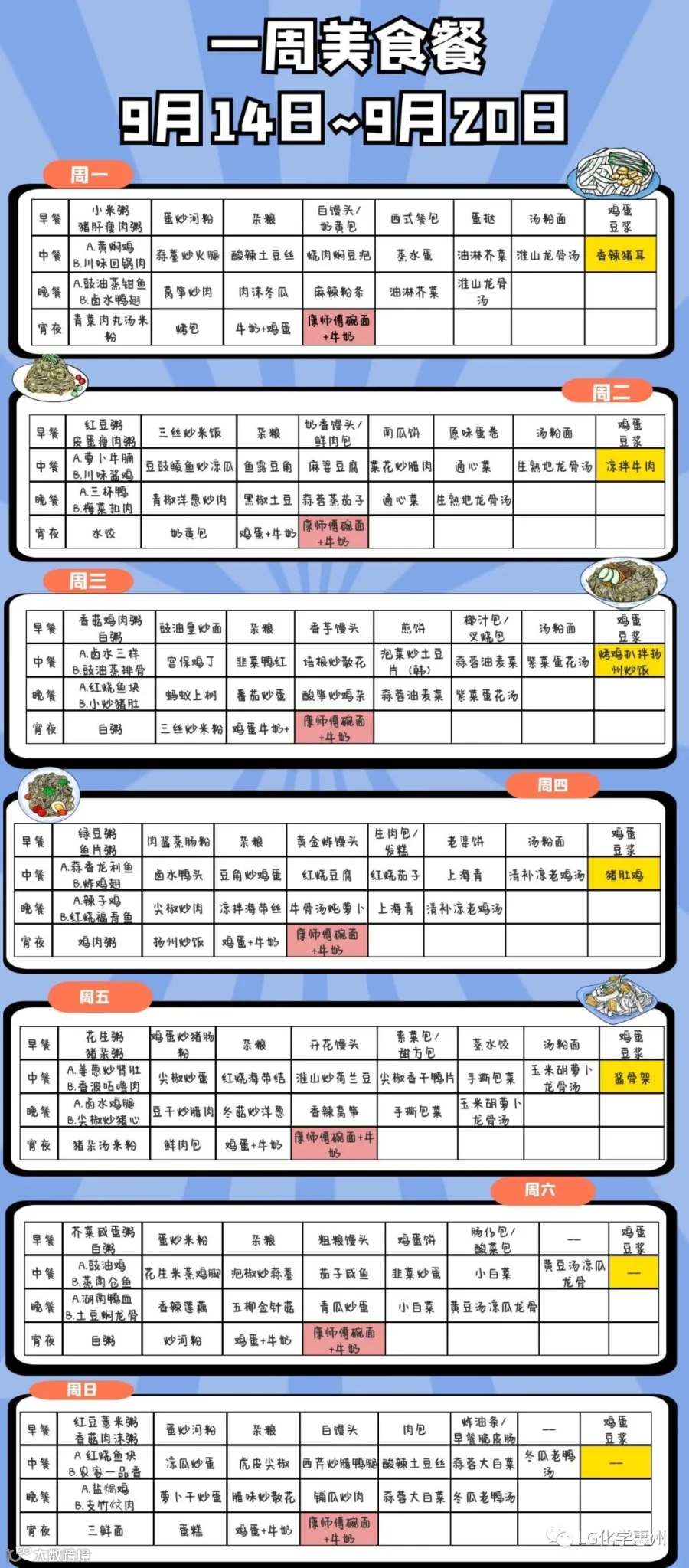 9月14日~9月20日食堂菜谱