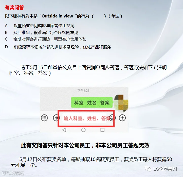 “让LG Way转化为实际行动!”主题宣贯及有奖问答第30期