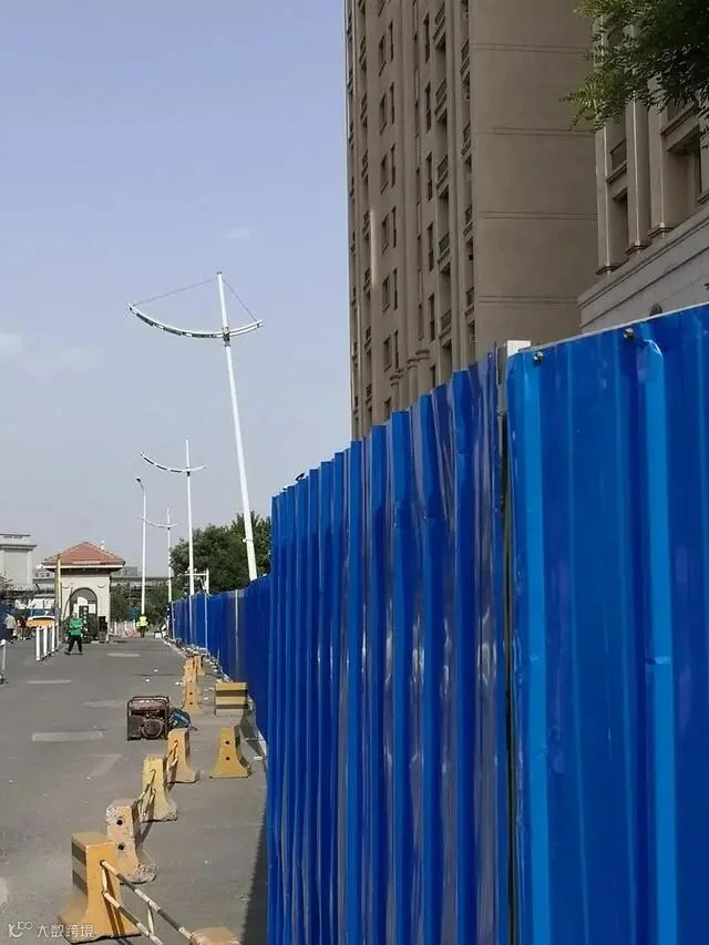 △受损楼栋前被蓝色铁皮板拦住,图源:央广网