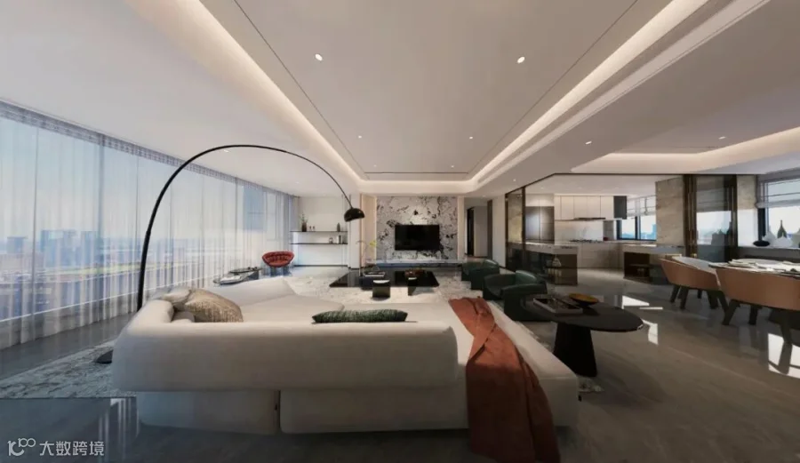 阳台、客厅、餐厅贯通一体,从家庭休憩、互动到就餐,再到观景,都能实现全家共享模式。