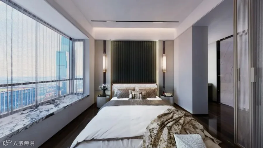 主卧超大套房设计,通透大气,墅级品质,私密性较好。南向景观飘窗,是主人专享的四季观景台。