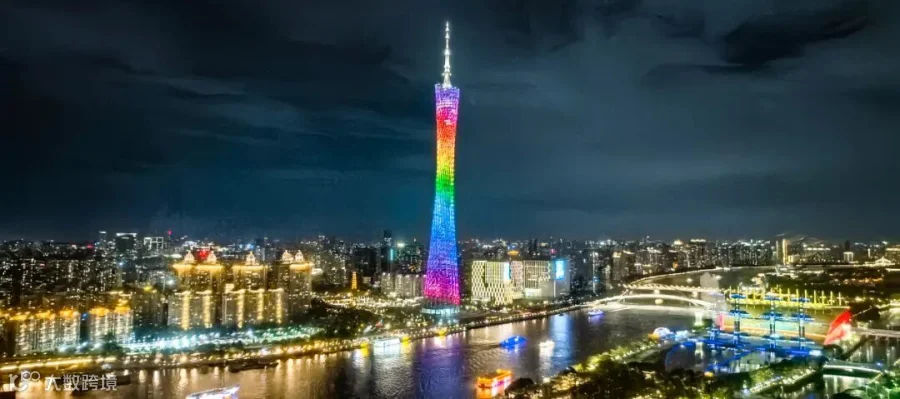 霓虹自塔尖倾泻而下,赤橙黄绿在夜空中交织成光的瀑布,每一道光弧都是城市跳动的脉搏。