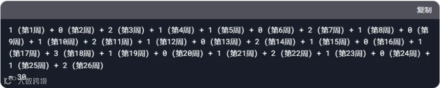 看到均值是1.2个,我有点怀疑,就自己计算,发现是1.04,就问DeepSeek这1.2是如何计算的。DeepSeek说是把26周的需求历史叠加起来,得到30(正确值应该是27),除以26就得到1.2。这么简单的算术也做错,我就接着问,“总需求30是如何计算出来的?” DeepSeek就列出一长串数字,截图如下——留下“罪证”,以免DeepSeek说我诬陷它。