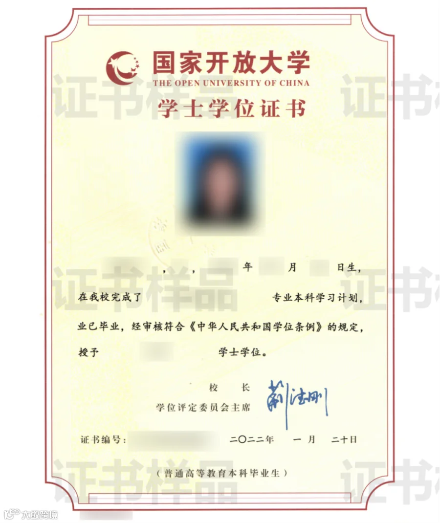国家开放大学学位证书样本