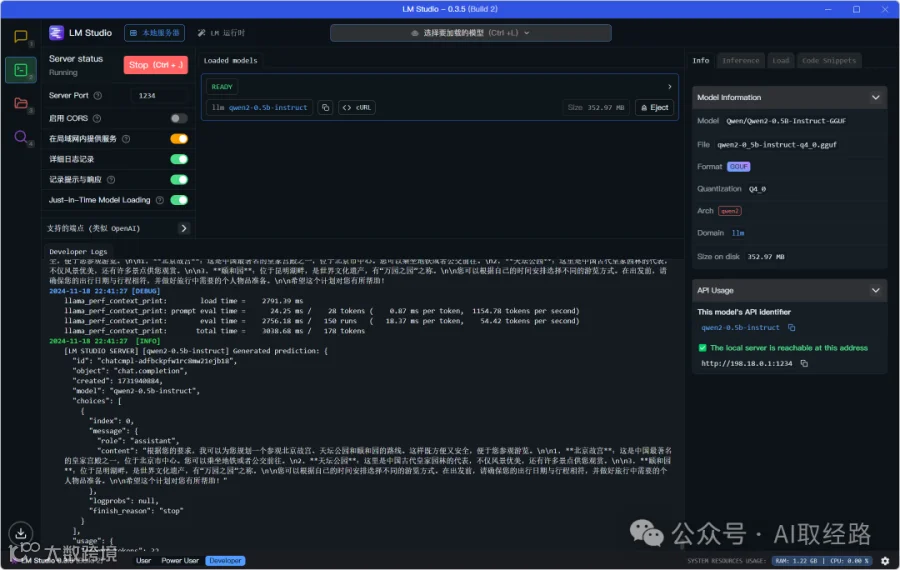 LM Studio后台输出调用日志: