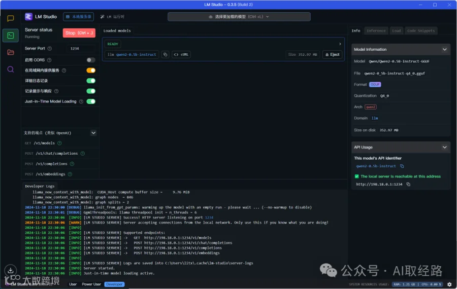 灵活的使用方式:用户可以通过内置聊天界面或本地服务器调用模型 API,灵活地与模型进行交互,并且可以同时运行多个模型。