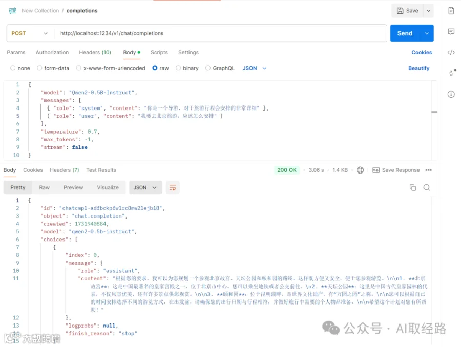 请求聊天接口:http://localhost:1234/v1/chat/completions