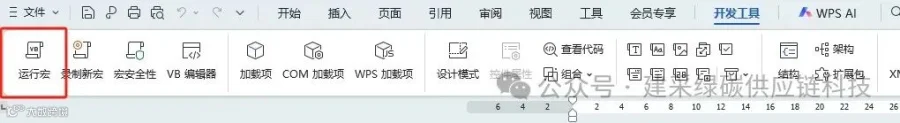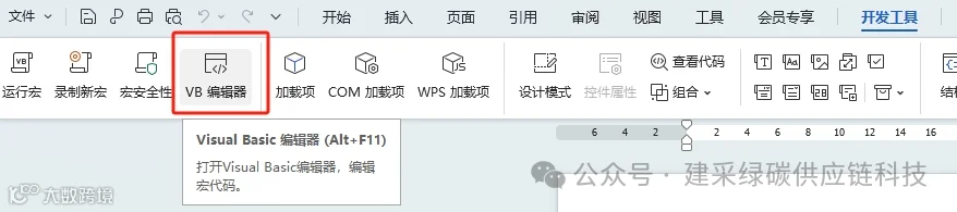 打开WPS文档,点击顶部菜单栏的「开发工具」→「VB编辑器」。