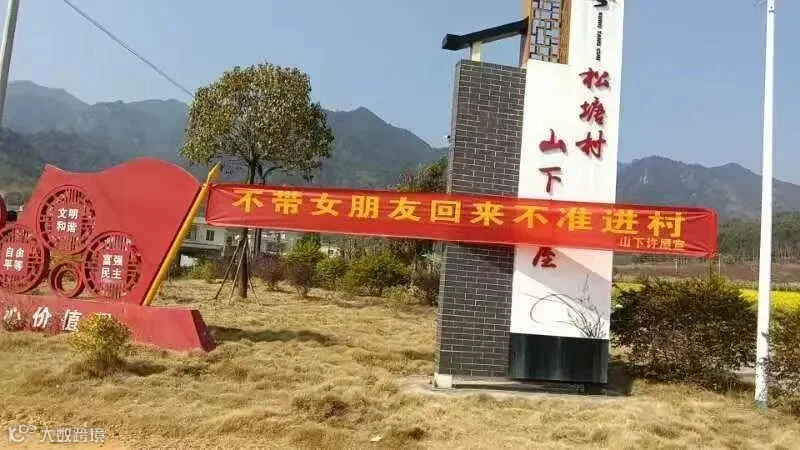 想象一下,春节将至,外出务工的青年们满载而归,却在村口被这条横幅“温柔”拦截。那一刻,是尴尬一笑,还是暗自庆幸早已“脱单”?哈哈,这画面,光是想想就让人忍俊不禁!