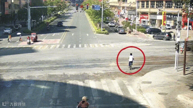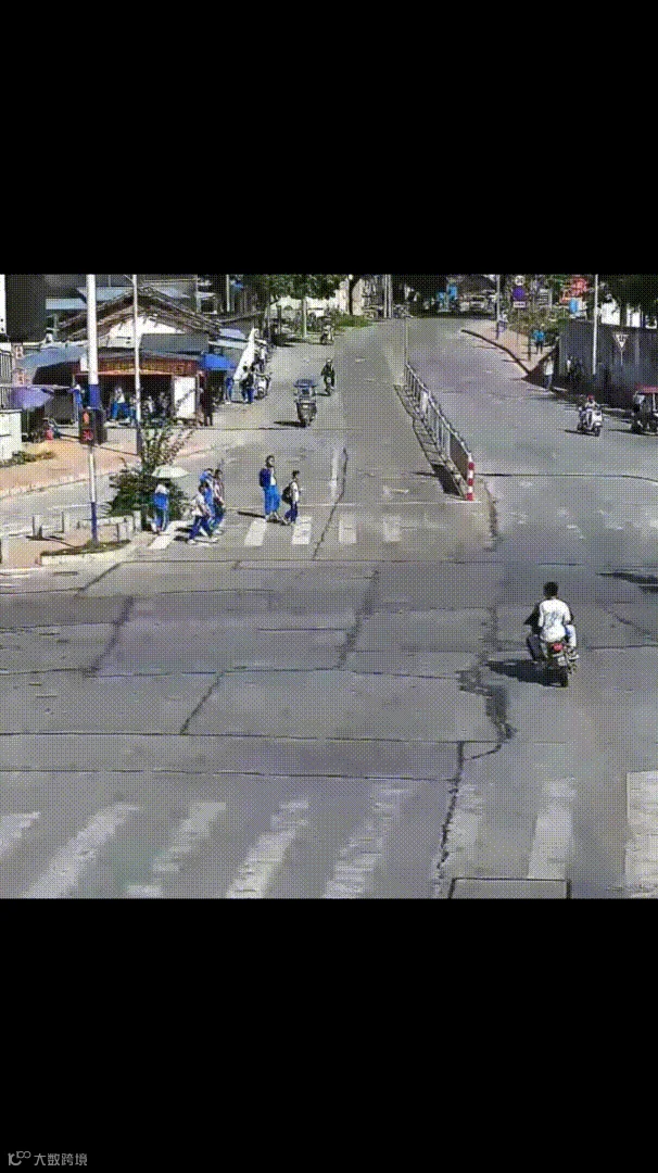 某地市,一学生骑车时双手离把,曲线行驶,遇上对向来车来不及反应,发生碰撞。