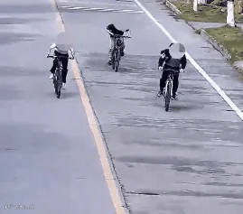 骑车时牵引、攀扶车辆或者被其他车辆牵引,如果被攀扶的车辆突然加速或者刹车,骑行者容易跌倒受伤。