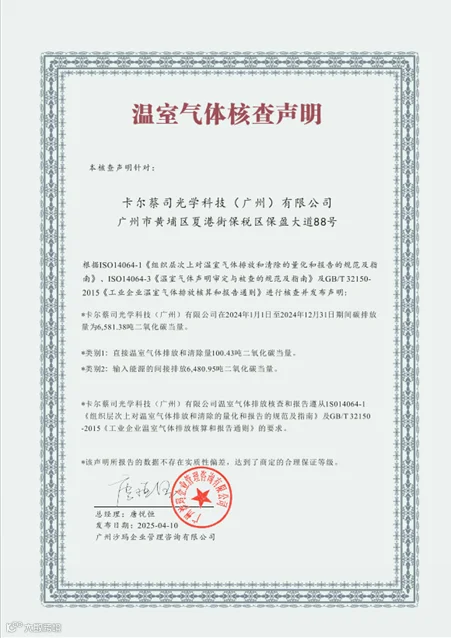 卡尔蔡司光学科技(广州)有限公司获得碳排放声明