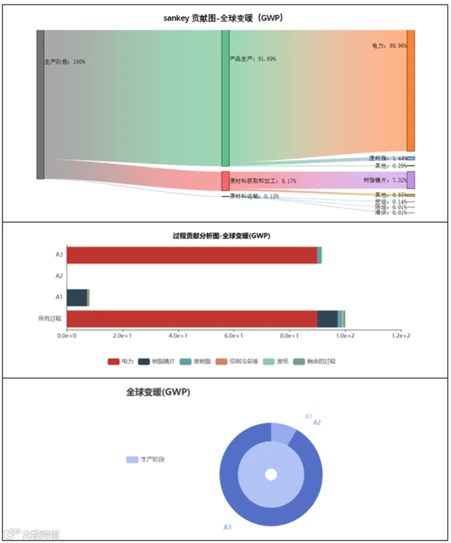 根据广州沙玛企业管理咨询有限公司出具的生命周期评价报告,卡尔蔡司光学科技(广州)有限公司1片定制化树脂镜片的全生命周期碳足迹为7.05 kg二氧化碳当量,镜片的碳排放量最高的阶段是生产阶段,为91.69%。