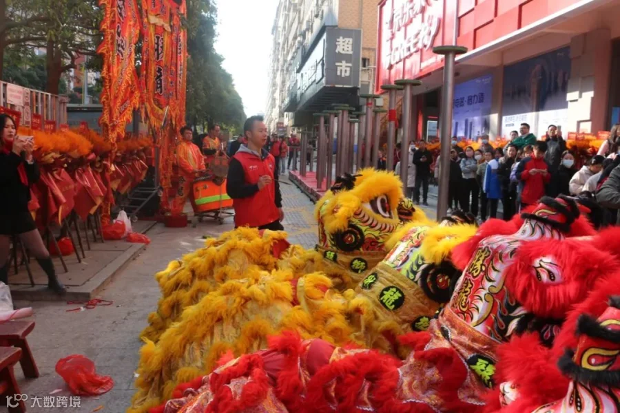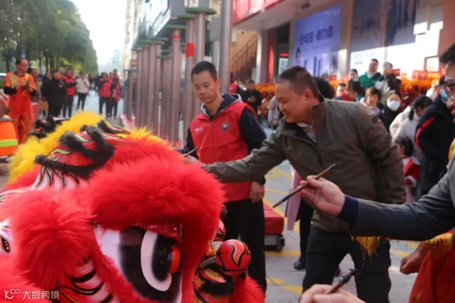 吉时已到,为瑞狮“点睛”,象征着为瑞狮赋予了灵气及生命,亦寓【点金】,“一点”龙精虎猛,“再点”生意兴隆,“三点”财源广进,瑞狮登高采青,象征福气临门。