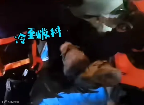 被抬上担架时,男子冻得全身发抖。