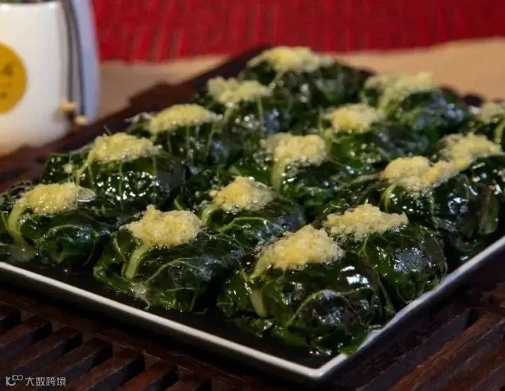 酿菜包是纯手工制作而成的,采用农家金叶菜,馅是用农家韭菜、薯粉、土猪肉混合一起做成的。先把整片的金叶菜用开水煮一下,然后把调制的馅包在用开水烫过的金叶菜里,最后把菜包摆放在锅里加水慢慢熏熟。