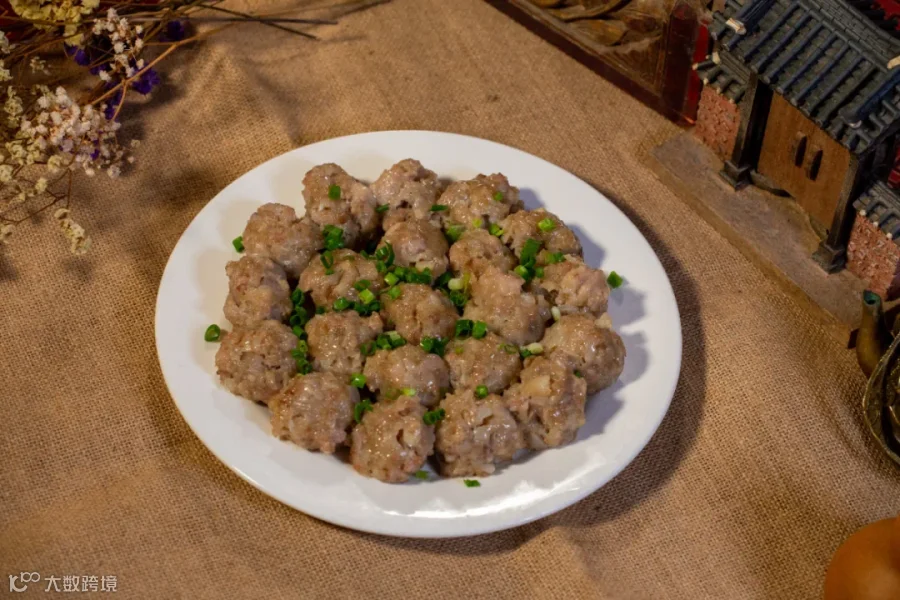选用新鲜猪肉前甲,将肉切成丁状,然后放入本地番薯粉、食盐、葱头(或香菇)抓拌均匀搓成圆形,水开上锅蒸十分钟即可。