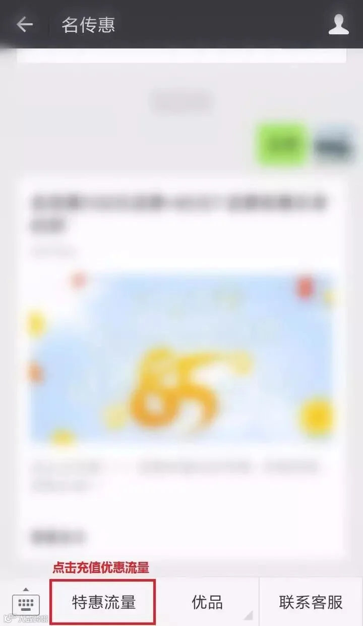 方式②:在公众号菜单栏,点击【特惠流量】即可进入充值页。