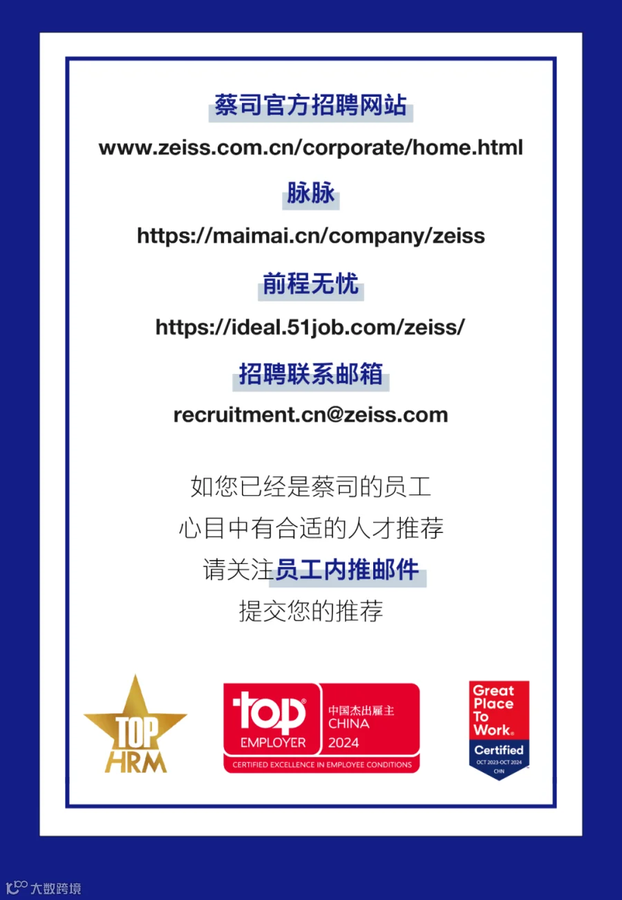 如果你也渴望在这个充满机遇和挑战的环境中获得成长和成功,那么现在就加入ZEISS吧,就像Tom所说的那样。