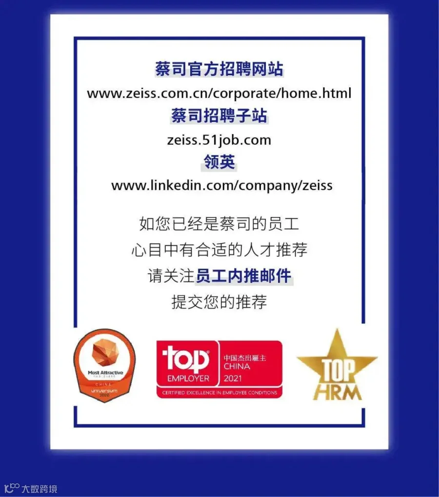 卡尔蔡司致力于在半导体制造技术, 工业质量与研究,医疗技术和光学消费品等领域提供全方位的产品与服务,为人才提供全球视野与先进技术。