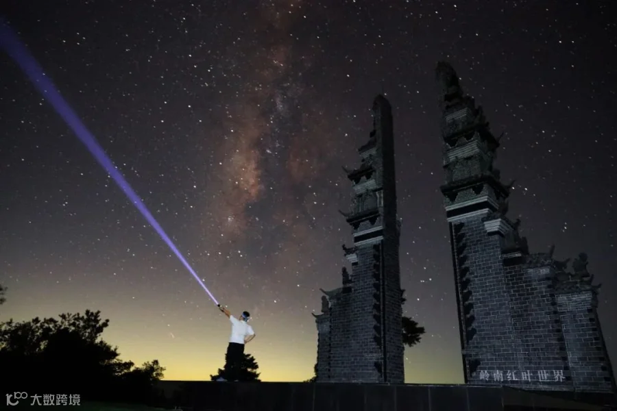 “夜空如洗星如织,建筑巍峨映夜色。”
