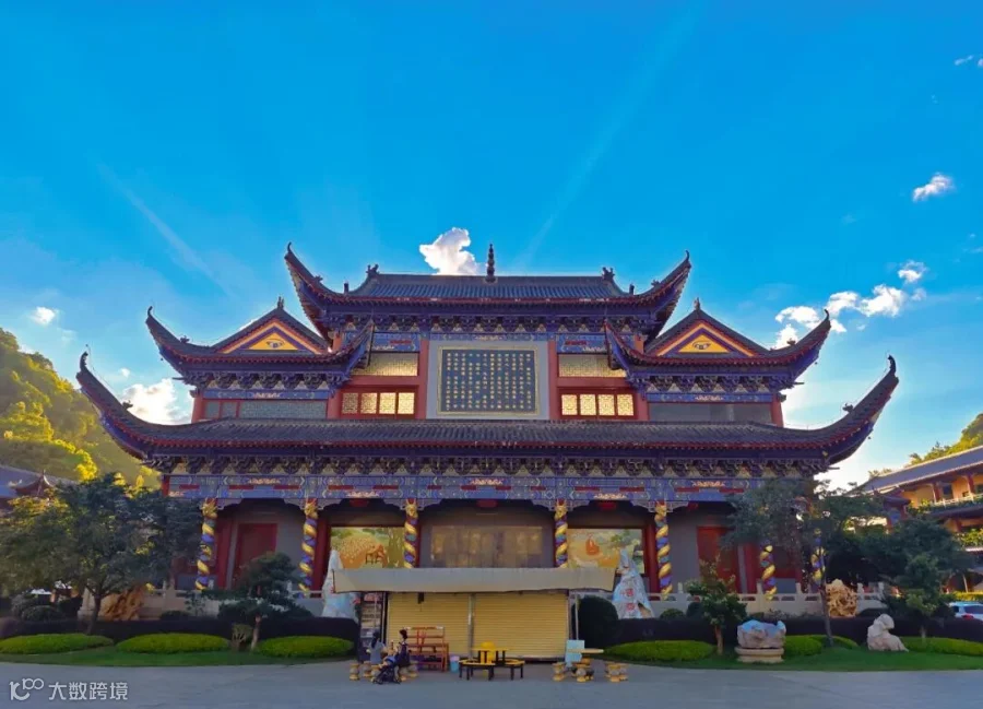 天空的晴朗蓝与几朵悠闲的白云,为这宏伟的建筑增添了几分宁静与祥和,复杂的木雕与细腻的彩绘,每一处细节都透露出匠人的心血与智慧。