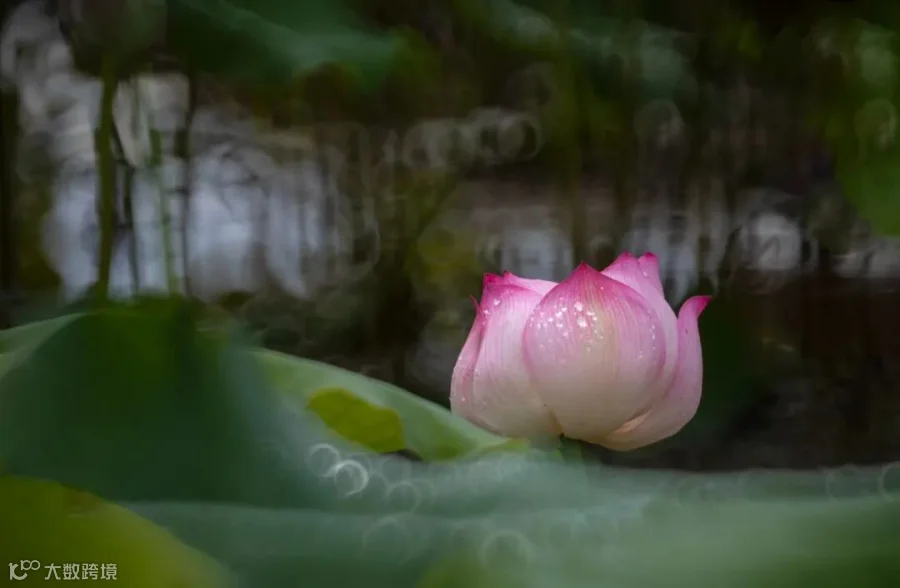 粉嫩的荷花亭亭玉立于绿叶之上,犹如一位清丽脱俗的仙子,傲然于世。水珠宛如点点繁星散落,增添了几分灵动与生机,让这片绿色的世界更加生动鲜活。