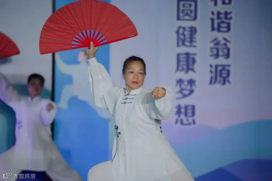 一袭白衣如雪,红扇轻舞,武术之美,健康之愿,在这一刻完美交融,更是她每一次挥扇、转身间传递的信念。