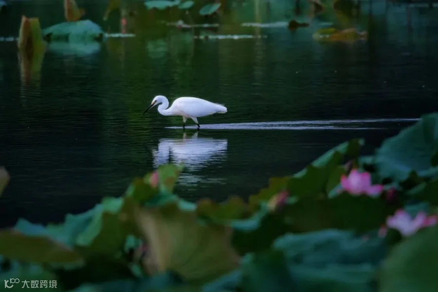 《荷之韵 · 白鹭觅食》摄影:严志明