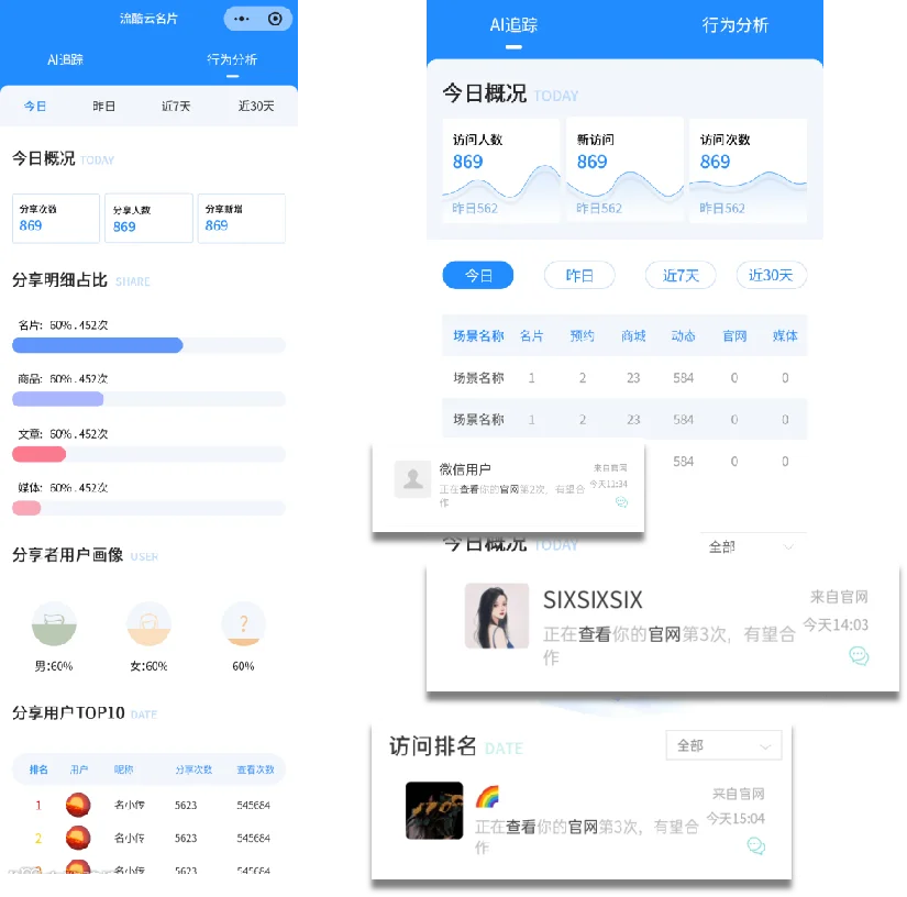 ✔ 从H5内容传播数据中获取价值,数据可视化呈现,多维度分析潜在客户