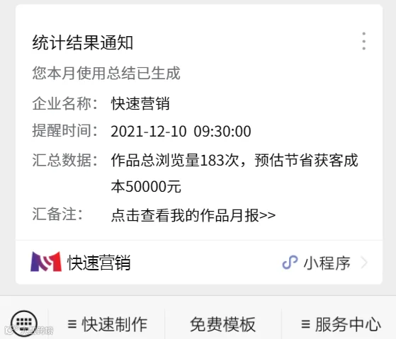 快速营销是一站式的云营销平台,帮助企业构建必备的智能营销工具。通过快速创建智能云名片、一键生成H5活动、打造私域流量的SCRM客户管理和洞察客户的数据雷达等多种的营销工具,助力企业简单、高效的上线酷炫的营销活动和让每个营销人员高水准、标准化的推广企业产品和服务。