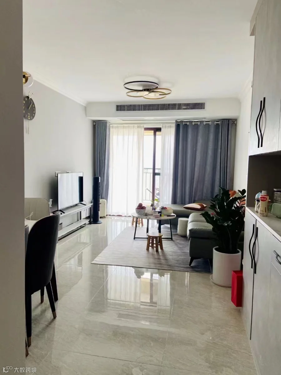 新收中梁中高层,95平方,三房两厅两卫带阳台,拎包入住,空调冰箱洗衣机热水器全齐,全屋索菲亚定制柜,阳台望龙湖,售75万包过户费。