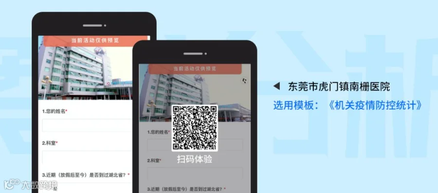 2、南栅医院使用模板,也为其他医疗机构选用模板起了示范性作用,使更多医院有了更保障的安全措施和更便捷的健康登记工具。