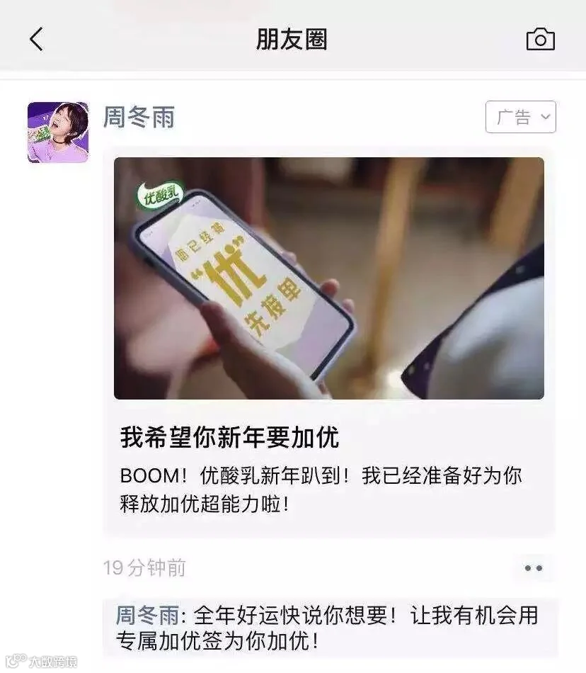 在经历过李现、赵薇之后,虽然明知道是朋友圈信息流广告,但还是无法讨厌,甚至还有点进行互动的冲动。