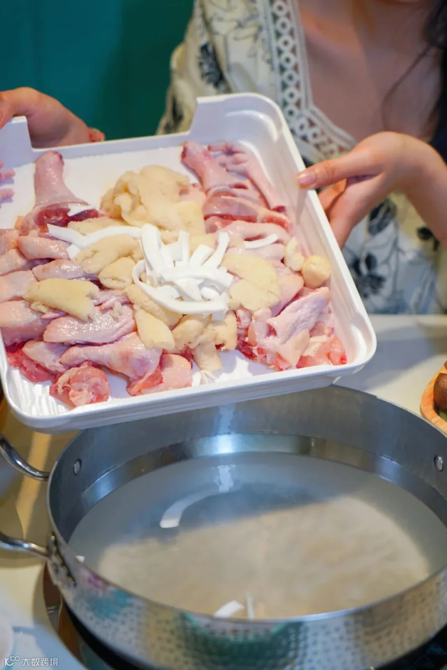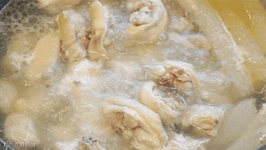 第一步鸡肉下锅!掐秒开锅!清透的椰汁水沸腾后,将文昌鸡入锅,黄金6min等待,掐秒开锅,连飘香的蒸汽都想暴风吸入!