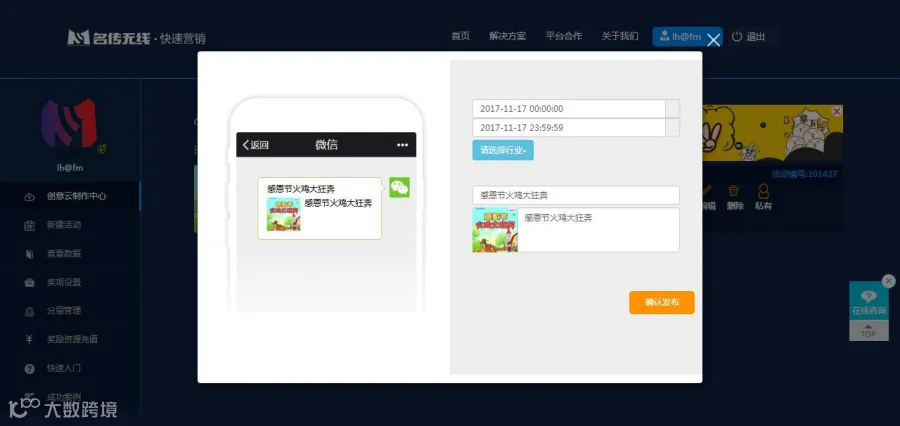 注:为了确保您的活动能正常发布,尤其是想体验我们的免费流量的,发布后请联系我们平台客服(客服QQ:1550837094),了解账户能否正常使用。