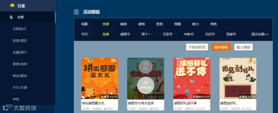 第一步 登录平台,选择活动模板。